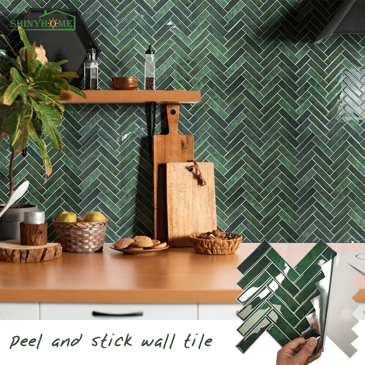Transform your kitchen and bathroom with our stunning EZ green herringbone 3D self-adhesive wall tiles. These waterproof peel and stick tiles offer an effortless, no-grout installation for beautiful home upgrades in minutes.